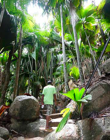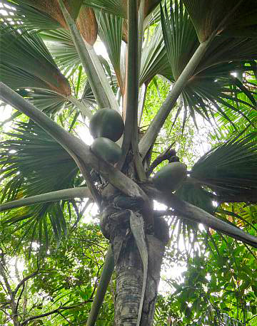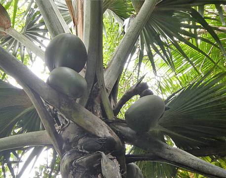 Coco de Mer palmen er også unik ved enten at være en hun- eller en hanplante, så uden hanplanten til at bestøve sig, kan den ikke formere sig.