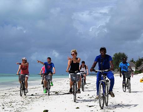 Denne ½-dags udflugt fra kl. 9.00 til 12.00 er perfekt for hele familien, næsten uanset alder, når bare man kan cykle. Transfer fra dit hotel på Zanzibar til Jambiani, der ligger på sydøstkysten af Zanzibar. Her mødes I med jeres guide (engelsktalende), der er med jer på hele turen.