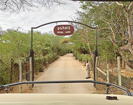 Sidst på formiddagen kørte vi ind igennem gaten til Ashnil Aruba Lodge, der ligger i den sydlige del af parken. Med ankomst sen formiddag, var der god tid til at nyde dyrelivet fra verandaen foran vores værelse. En masse firben kravlede rundt i græsset og på træstammer, i hundredvis af fugle fløj i trekant mellem to akacietræer og et mindre vandhul uden for hegnet til lodgen. I vandhullet/ mudderhullet lå en enkelt flodhest og hvilede sig. Længere ude på savannen gik elefanter rundt og græssede.