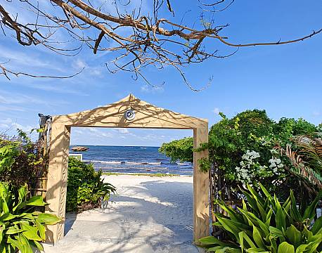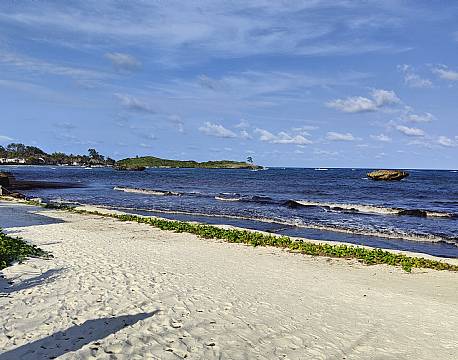 Efter en dejlig frokost ved en lille pool i skyggen af de høje palmer, gik vi en tur i området og endte nede på stranden med hvidt sand og blå bølger. Et ideelt sted til afslapning.