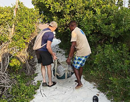 Dette skete dagen efter vores besøg, hvor vi tog ud til centeret for at se en grøn havskildpadde, som var blevet reddet ud af en fiskers net. Heldigvis var den fit, så da den var blevet mærket, blev den sat tilbage i havet. En helt utrolig oplevelse, at se den forsvinde igen i det mægtige oceans bølger.