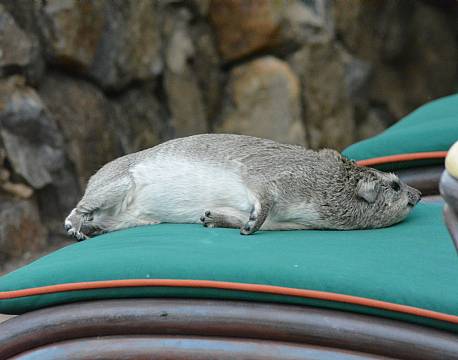 Det gav lige en ekstra dimension på vores pool besøg, og vi havde samtidig udsigt til agamer, der også solbadede og en dejlig have med smukke blomster og træer, der på fornemmeste vis supplerede den formidable udsigt fra poolen ud over Masai Mara.