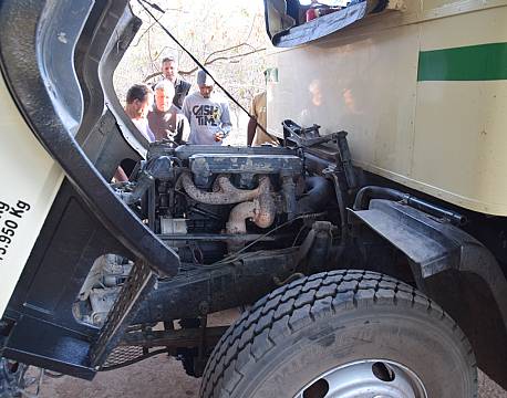 Terrænet og vejene i Afrika kan godt byde på udfordringer for bilerne, men hvor er der dog relativt få punkteringer, når man tænker på det underlag der køres på. Det beror selvfølgelig et stykke ad vejen på held, men også på de dygtige chauffører, der sidder bag rattet. Uanset kan der dog ske uheld, og så må man beundre den kreativitet, der udfolder sig.