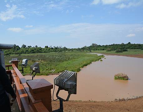 ”Efter en dejlig frokost på Aberdare Country Club, der ligger med en forrygende udsigt, er vi nu for første gang på besøg på The Ark i Aberdares. Et enestående trætophotel inde midt i skoven i en lysning ved et vandhul. Masser af dyr. Helt tæt på, blandt andet fra et fotoskjul i øjenhøjde med dyrene. Der er lys på vandhullet, så man også kan følge med i dyrelivet aften og nat, og skulle søvnen omfavne én, kan man blive vækket, når der er særlige dyr ved vandhullet. Lækker forplejning på en dejlig buffet og en venlig og diskret stab af tjenere. Perfekt forkælelse.”