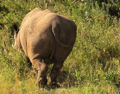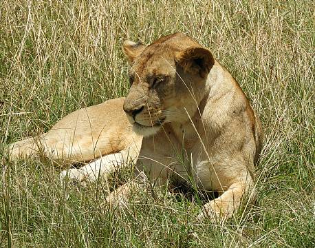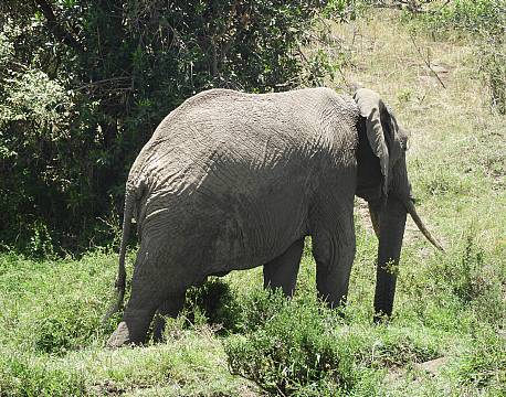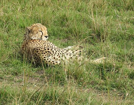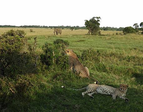 ”Vi havde været en del rundt den eftermiddag på vores safarikørsel. Sidst på eftermiddagen får vi først øje på en enlig hanelefant med nogle imponerende stødtænder og dernæst to geparder. Vores chauffør kører lidt længere væk. Jeg når at tænke ”øv”, for geparderne forsvinder ned i en grøft for at drikke af vandløbet nede i grøften. På afstand kan vi lige se halerne, der af og til bevæger sig. Så er de væk.