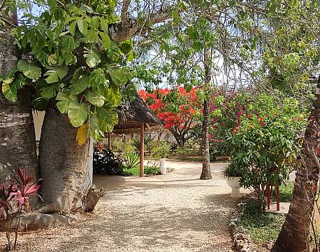 ”Efter indtjekning og udlevering af et armbånd som bevis på at vi havde all-inclusive, fik vi en lille rundvisning. Nød synet af de mange blomstrende buske og træer samt de imponerende store baobabtræer.”