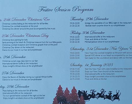 ”På skrivebordet lå et fint program med alle julens aktiviteter. Skattejagt, pizzabagning, underholdning af artister og dans til levende musik var blandt tilbuddene.”