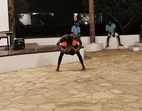 ”Efter middagen – som igen var lækker buffet – var der underholdning med titlen ”African Show”. Det var dans, akrobatik, ildsluger og trommesoloer. Desuden en mand med hyper mobile led, der kunne vride sig i alle mulige og ikke mindst umulige positioner. Det gav helt kuldegysninger, men han så ud til at nyde det.”