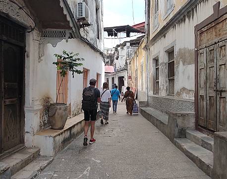 ”Stone Town havde uforandret sit arabiske præg, de smukke træudskæringer på dørene og de smalle gader. Men igen alt for mange turister og boder med souvenirs selv inde i det gamle fort. Frokosten på en arabisk tagrestaurant fik dog humørbarometeret til at stige adskillige grader.”