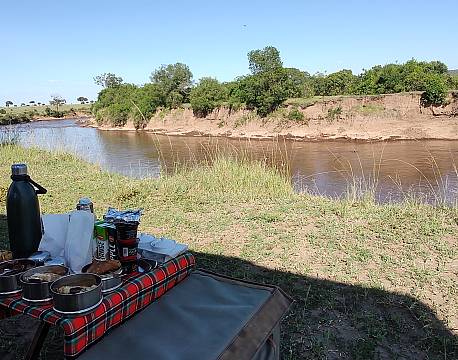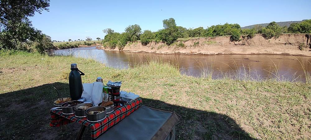 Kørte herefter til floden for at nyde vores medbragte morgenmad. Udsigten over floden med både flodheste og krokodiller var bare SMUK!