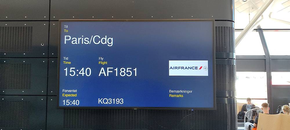 Paris’ Charles de Gaulle lufthavn er kæmpestor. Fandt nogenlunde ubesværet hen til paskontrollen. Der var kun to pasbetjente på arbejde, så der opstod hurtigt en kø, og da en del var ved at misse deres næste fly, lod jeg mig velvilligt overhale, idet jeg selv havde god tid. På et tidspunkt rakte jeg hånden frem og sagde ”Yes, 10 dollars”, hvilket fremkaldte et lille smil hos de lettere stressede rejsende.
