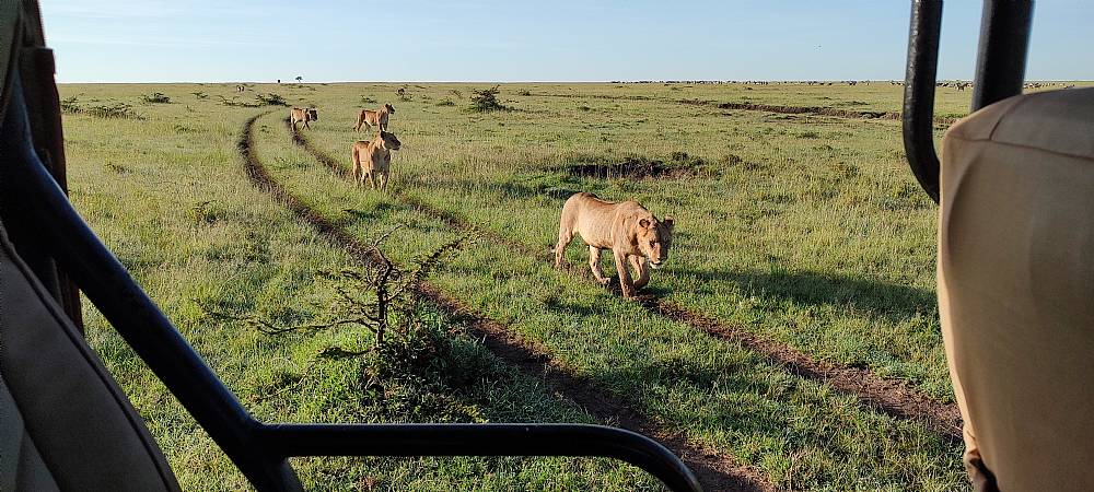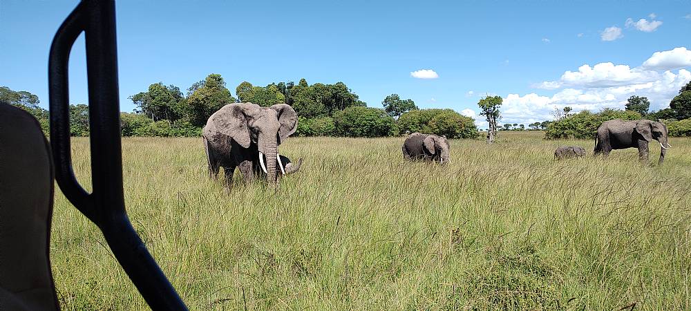 Alle skyer forsvandt, da vi nåede ud til Mara og jeg så både giraffer og elefanter fra luften.