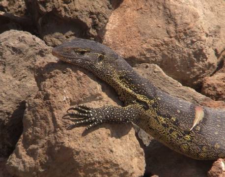 Der er mange flotte edderkopper, ligesom både nilvaranen og klippe agamen er smukke dyr, men også de tager hurtigt flugten, når man nærmer sig.