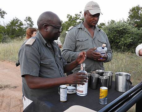 Eftermiddagens gamedrive bød på store dyreoplevelser. En gruppe løver med 12 unger i forskellige aldre viste sig frem og i et træ lå en leopard og fornøjede sig med resterne af et bytte. Når man lige har vænnet sig til at vegetationen er noget tættere her end i Østafrika, er det faktisk meget spændende at køre rundt og spotte dyrene. Sydafrika har ligesom Østafrika et fascinerende fugleliv. Vi sluttede af med sundowner og snacks, inden vi satte kursen hjemad til en lækker middag og hygge.