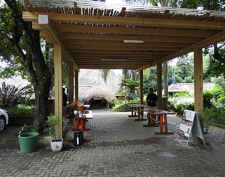 Vi fik en meget hjertelig og personlig modtagelse på Ezulwini River Lodge, hvor værtsparret stod klar, da vi hoppede ud af bilerne. I receptionen stod Ed og Gloria (tjenere) klar med fugtige klude til at tørre støvet af, og en dejlig forfriskende velkomstdrink med smag af grapefrugt.