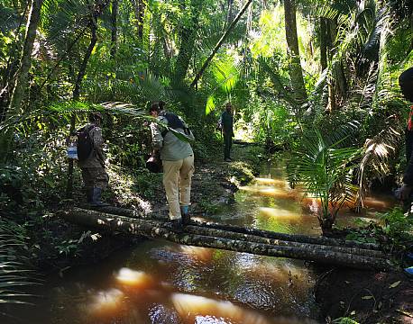 Vi gik ind i regnskoven med oprejst pande og stor optimisme. Alle lyde, dufte, farvestrålende blomster, flagrende sommerfugle og grønne planter var som vitaminer for sjælen. Varmen og den høje luftfugtighed gjorde, at sveden hurtigt drev af os. Der var dog stadig overskud til at kigge på insekter og de særeste svampe undervejs. Regnskoven er bare et skatkammer af liv og mangfoldighed. Her er noget for alle sanser. Det er ubegribeligt at vi fortsat er i gang med at ødelægge regnskovene med stor hast.