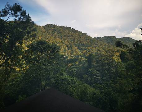 Alle ture starter fra centeret. I modsætning til i forgårs var der ingen kørsel. Vi startede ud til fods. Det gik opad i dag - MEGET opad. På smalle stier næsten som serpentinesving på en bjergetape i Tour de France. Jeg havde kun mig selv at sørge for. Havde hyret en hjælper, som bar min rygsæk med regnjakke, myslibarer, vand og madpakke. Han bar også mit videokamera, bortset fra når jeg skulle filme, så byttede vi og han holdt mine vandrestave. En stor del af vejen var der så stejlt, at han gik foran og gav en hjælpende hånd og når det gik ekstra opad eller hen over store sten eller væltede træstammer, så skubbede en anden hjælper også bagpå.