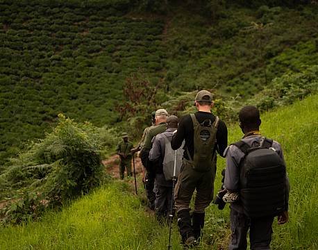 Vi tog mange drikkepauser undervejs, så de langsomste også kunne følge med. Det gav tid til at nyde de fantastiske udsigter, stemningen og duftene. Stemningen i gruppen var god og afslappet, selvom vi fik brugt fysikken godt undervejs. Inden i havde jeg en spændt forventning til endnu et møde med gorillaerne.