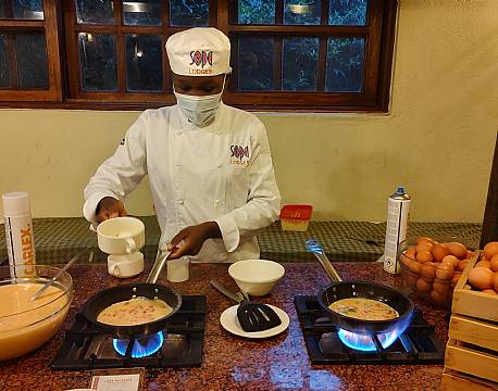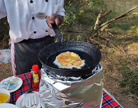 Der er noget særligt ved at sidde ude på savannen og spise den omelet, som kokken lige har skubbet fra panden over på din tallerken.