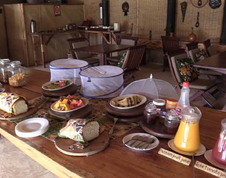 Har man aldrig været i Afrika, kan man - meget naturligt - være usikker på, hvad der mon bliver serveret. Lad mig indledningsvis slå fast, at der ingen grund er til at pakke rugbrød og spegepølse i kufferten, der er masser af mad til gæster på safari. Planlæg derfor heller aldrig kombinationen af safari og slankekur.