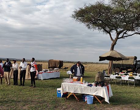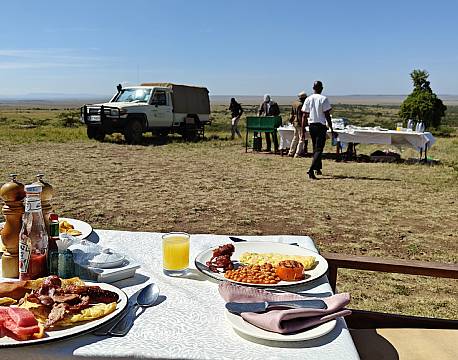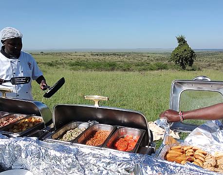 Efter et par timers safarikørsel finder chaufføren et sikkert men skønt sted at slå sig ned omkring klapbordet med den medbragte morgenmad. Om aftenen har man afgivet sin bestilling og så står kokken tidligt op og sørger for at madkurven bliver pakket.