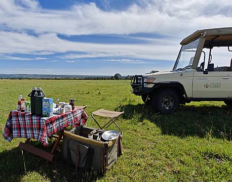 De særlige oplevelser kan også skabes under mere ydmyge forhold. I stedet for at køre hjem til campen for at spise morgenmad i restauranten, kan man tage klapstole, klapbord og morgenmad med ud på savannen til en picnic morgenmad.