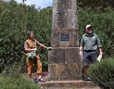 Gravstedet er en obelisk med inskription og 4 sten, der markerer graven. Det hele er omkranset af blomster og diverse buske. Udsigten er i dag begrænset på grund af bevoksningen, men tidligere kunne man i klart vejr se både til farmen, Mt. Kenya og Mt. Kilimanjaro. John fortalte her mere om Karen Blixen og ikke mindst hendes relation til Denys.
