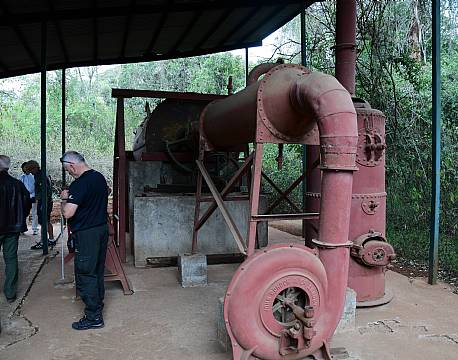 Vi sluttede besøget af med en lille gåtur til et hjørne i parken, hvor man har udstillet nogle af de maskiner, der blev brugt i sin tid på farmen i forbindelse med kaffeproduktion. Her delte John igen ud af sin store viden om Karen Blixens historie.