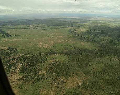 Fra luften ses ofte flere af de større dyr, som giraffer og elefanter, ligesom masaiernes bosættelser træder tydeligt frem.