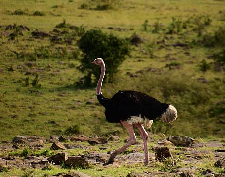 Også denne morgen var gavmild i forhold til dyreoplevelser. Masser af giraffer, struds, antiloper, spændende rovfugle og en hule med hyæneunger. Dertil en gepard med sine tre 1½ år gamle unger. Tiden flyver bare af sted, når man bevæger sig rundt i de flotte landskaber og inden man får set sig om, er der gået to- tre timer og det er tid til at vende tilbage til campen og et veldækket morgenbord.