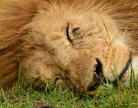 Vi kom både forbi en øregrib i toppen af et akacietræ, en større gruppe elefanter ved floden, egyptiske gæs, antiloper, en flodhest på land, en gruppe giraffer og løver ad flere omgange. En gruppe på 4 brødre har for nylig overtaget området og løveparringer var derfor på programmet flere gange i løbet af de næste dage. Nogle af løverne havde sår og rifter, som bevis på at de havde været i kamp.