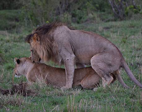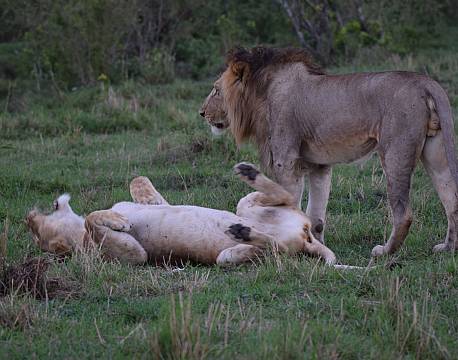 Det man derfor som oftest oplever som deltager i en safari er mødet med løverne om morgenen, hvor de ligger i græsset med resterne af byttet fra nattens jagt eller de ligger og slapper af med fyldte maver.