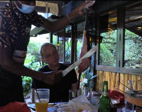 En anden mulighed er Carnivore. Det er en kødrestaurant og på vej til sit bord, passerer man den kæmpestore grill, hvor kødet tilberedes.