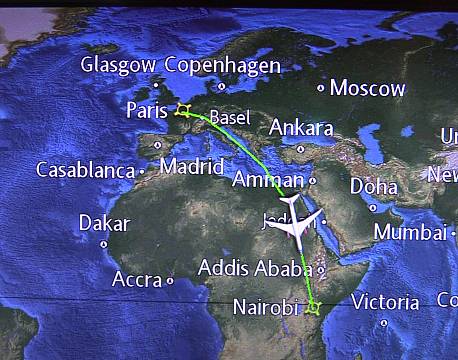 Når man starter ud fra Paris, ligger der ca. 6.600 km’s flyvning foran én (ca. 8½ time). Man er lige påbegyndt sin første rejse til Afrika og tænker, ”hvordan skal jeg nogensinde få over 8 timer til at gå i dette flysæde?”