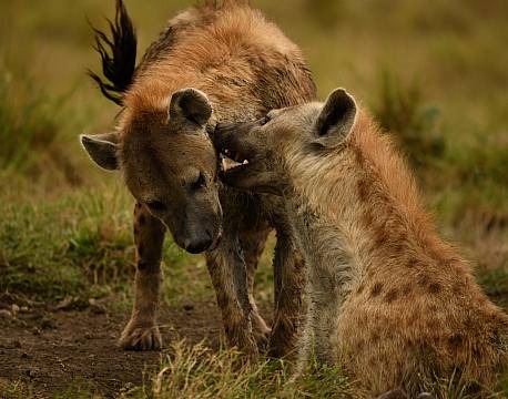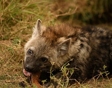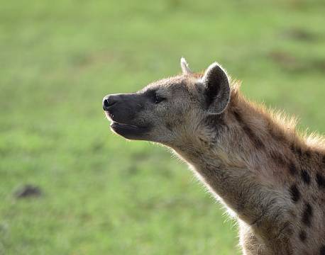 Hyænen lever i større klaner og en rigtig god start på dagen ude på savvanen er at mærke solens varmende stråler, mens man sidder i bilen ved en hyænehule og følger med i livet. De små, helt sorte unger – som er rigtig kære – kigger forsigtigt frem fra hulen, de lidt større, plettede unger – som er meget nysgerrige – kommer hen og kigger på bilen, og de voksne lunter roligt omkring eller ligger i græsset og hviler sig.