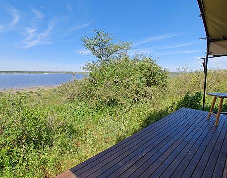 Wow. Af campens 13 telte havde jeg fået nummer 7. Fra min terrasse var der en fantastisk udsigt over Ndutu søen med lyserøde flamingoer. Udover migrationen oplevede jeg både elefanter, giraffer, antiloper, løver og leoparder i dette område.