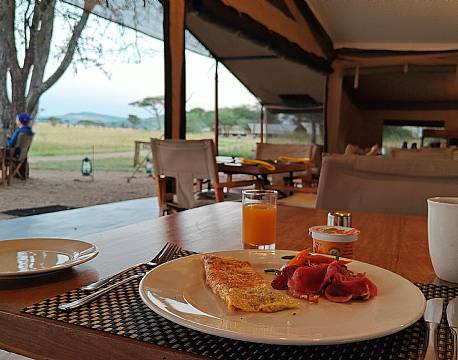Efter 5-6 timers kørsel gennem masailand ankom vi til Nyikani Camp Ndutu. Hvilken fornøjelse at blive budt på lækker frokost, mens man sidder og nyder udsigten til den omgivende natur. Efter frokost blev jeg ledsaget til mit telt.