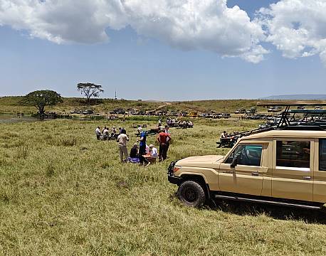 Et andet sted bilerne stimler sammen og der kan opleves trængsel er ved toiletter og frokostområde i den østlige side af krateret med det knap så mundrette navn Ngoitokitok. Her skal man passe godt på sin mad for glenter i området er verdensmestre i at styrtdykke og tage en bid. Vi blev siddende i bilen og indtog vores frokost i stedet for at bruge de opstillede borde og bænke.