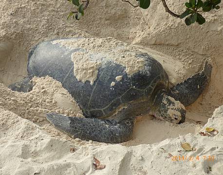 Naturoplevelser: vi så en skildpadde lægge æg og gå ud i vandet igen. Dagen efter kom der nogle fra et naturcenter, gravede æggene op - ialt 114 stk., og gravede dem ned igen på et ugeneret sted.