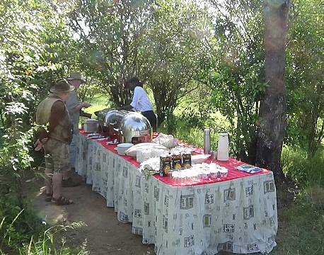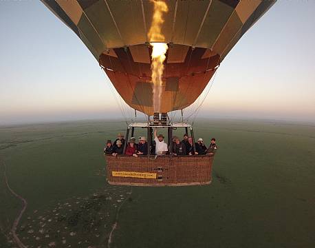 En morgen var vi på ballontur og oplevede solopgangen, imens vi svævede hen over savannen og så dyrene bevæge sig under os. Vi landede næsten nede ved grænsen til Tanzania og blev derefter beværtet med champagne og det helt store morgenbord ude på savannen, inden vi kørte tilbage mod vores overnatningssted, hvor vi også lige kom tæt forbi 3 løver, en gepard og et par flodheste, som nød morgenstemningen.