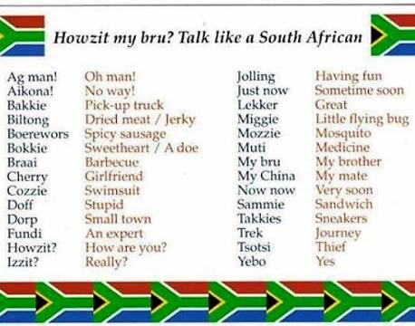Her i Cape Town er det ”Afrikaans” der er dominerende. Det minder meget om hollandsk og tysk, og ind imellem dansk, så man kan godt være heldig at forstå en smule i ny og næ. For eksempel yndlingsudtrykket ”lekker” som ret præcist kan oversætter til ”lækker”.