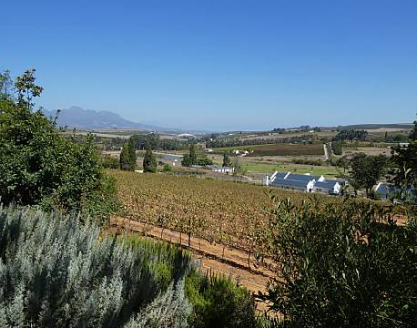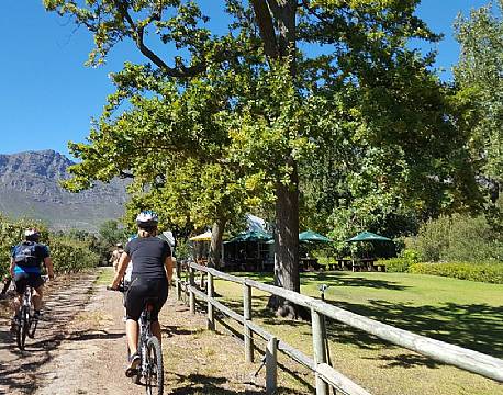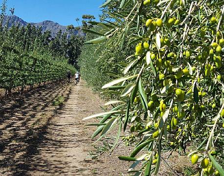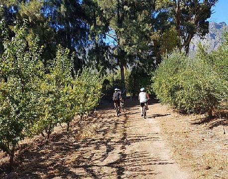 I Franschoek var vi med guide på cykeltur gennem vinlandet. Der blev cyklet gennem vin-, oliven-, fersken- og blommemarker - meget meget smukt og hele tiden med bjergene i baggrunden.
