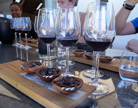 Der blev besøgt forskellige vingårde, hvor de ædle dråber blev prøvesmagt foruden de små "hapsere" såsom biltong (tørret kød), oliven og oste.