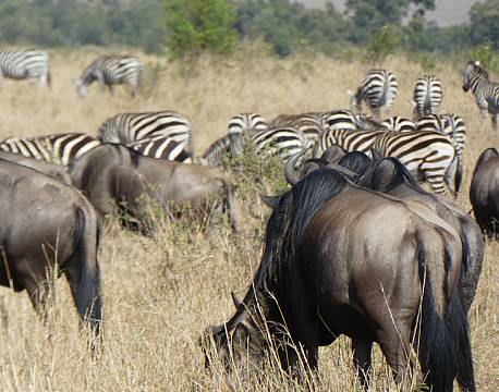 Med masser af gnuer og zebraer, der netop var ankommet fra Tanzania, så var det dem der tog fokus i Masai Mara og vi var SÅ tæt på at opleve en krydsning, men to krokodiller kom i vejen.