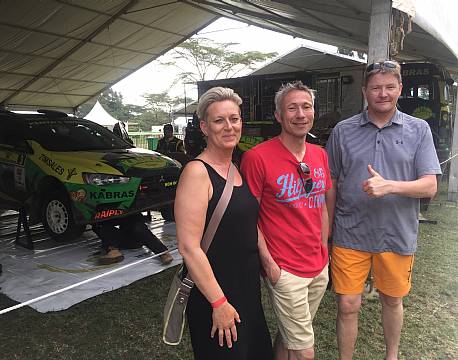 Og sørme om vi ikke stødte ind i en anden form for safari, nemlig Kenyas berømte SAFARI RALLY. Her ser vi bil no 6 en Mitsubishi EVOX blive serviceret. Den vandt efterfølgende.