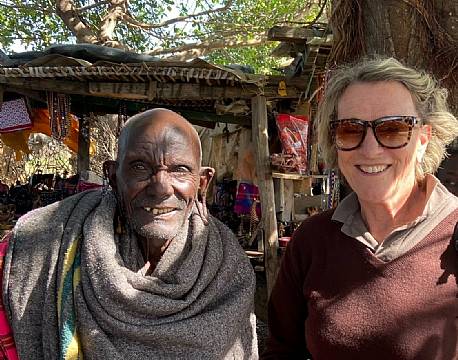 Masser af hilsner fra rejseleder Anna og masai høvdingen på 90