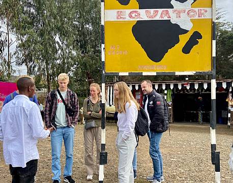 Ved ækvator gør vi selvfølgelig altid et stop, der snakkes med de lokale ligesom der besøges en teplantage undervejs.