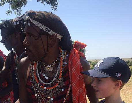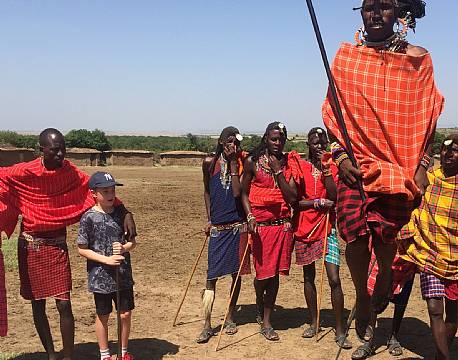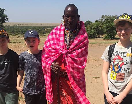 På vores Kenya Familie Safari var det lige noget for drengene Marius, Fabian og Philip at besøge en rigtig Masai landsby.