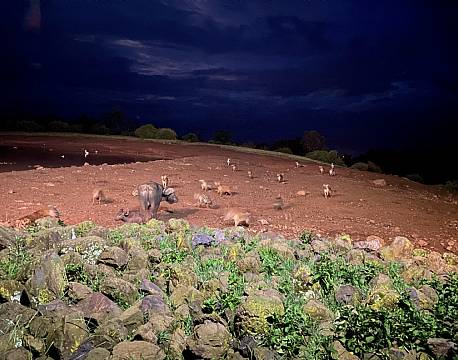 Efter vi havde indlogeret os på the ARK, gik vi ned i kælderstuen, hvor et drama udfoldede sig lige for øjnene af os, da en stakkels bøffelkalv langsomt blev omringet af ca. 15 hyæner. Selvom bøffeltyren modigt forsøgte at beskytte kalven blev den til sidst dræbt.