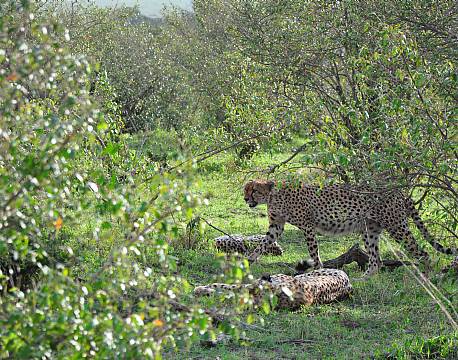 Alllerede den første aften i Samburu var leoparden krydset af, og det fortsatte næste morgen med en flok vandrende løver. Senere i Masai Mara var der flere af begge slags, og geparderne skuffede heller ikke.